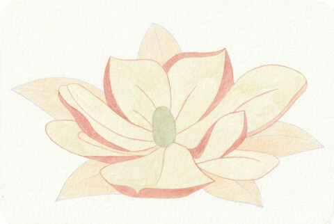 Magnolia (C) (coll. mini-fleurs ; plusieurs coloris différents) : carte postale 10,5 x 14,8 cm, aquarelle végétale avec des pigments extraits de chou rouge, garance, micocoulier, millepertuis, oignon blanc, tournesol et verge d’or.