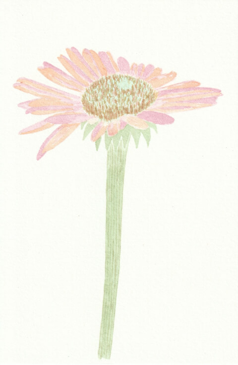 Pâquerette rose (coll. mini-fleurs) : 10 x 15 cm, aquarelle végétale avec des pigments extraits d’armoise commune, betterave, garance, micocoulier et verge d’or.