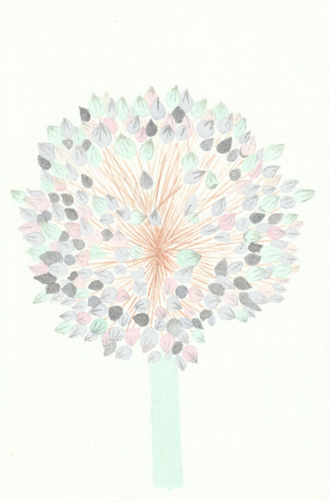 Poireau (coll. mini-fleurs) : 10 x 15 cm, aquarelle végétale avec des pigments extraits d’armoise commune, betterave, chou rouge et garance.