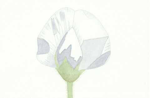 Pois-chiche (coll. mini-fleurs) : 10 x 15 cm, aquarelle végétale avec des pigments extraits de chou rouge et micocoulier.