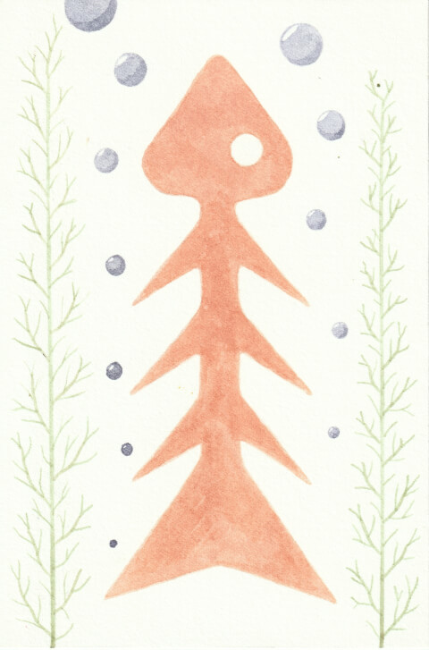 Poisson rouge : 10 x 15 cm, aquarelle végétale avec des pigments extraits de chou rouge, garance et micocoulier.