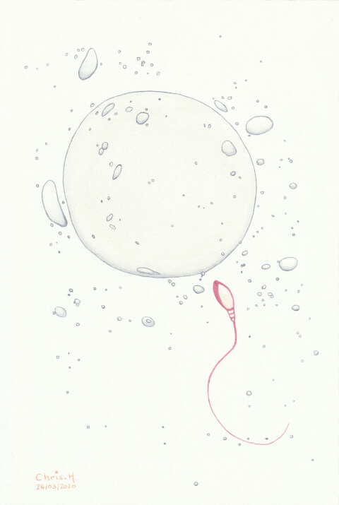 Rencontre : 20 x 30 cm, aquarelle végétale avec des pigments extraits de chou rouge et raisin d’Amérique.