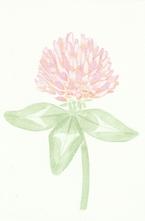 Trèfle des prés (coll. mini-fleurs) : 10 x 15 cm, aquarelle végétale avec des pigments extraits de betterave, garance et micocoulier.