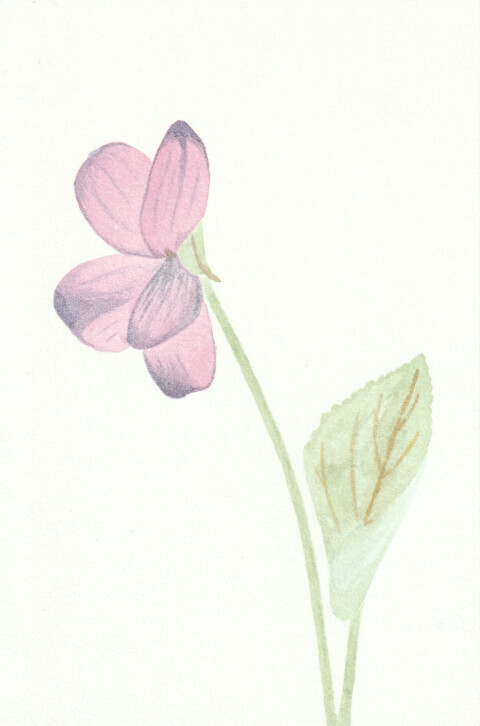 Violette (coll. mini-fleurs) : 10 x 15 cm, aquarelle végétale avec des pigments extraits d’armoise commune, betterave, chou rouge, micocoulier, oignon rouge et verge d’or.