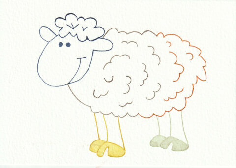 Agneau laimpik (coll. sport - CP) : carte postale 10,5 x 14,8 cm, aquarelle végétale avec des pigments extraits d’ailante, arbre de Judée, chou rouge, garance et micocoulier.