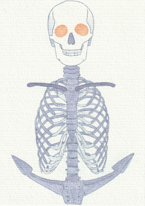 Ancre humaine (CP) : carte postale 10,5 x 14,8 cm, aquarelle végétale avec des pigments extraits de chou rouge et garance.