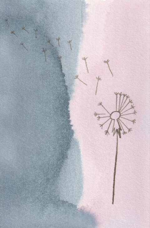 Chou-Chou Ancre, Cœur, Pissenlit et Rose (4 motifs différents) : 10 x 15 cm, aquarelle végétale avec des pigments extraits d’ailante et chou rouge (+ citron). La couleur rose est obtenue en ajoutant du jus de citron dans l’encre bleue de chou rouge.