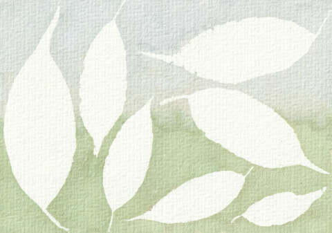 Ficus (coll. feuilles mortes ; plusieurs motifs différents - CP) : carte postale 10,5 x 14,8 cm, aquarelle végétale avec des pigments extraits de chou rouge, garance, micocoulier et verge d’or.