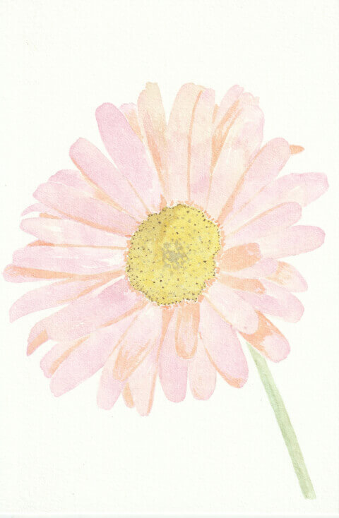 Marguerite (coll. mini-fleurs) : 10 x 15 cm, aquarelle végétale avec des pigments extraits d’ailante, armoise commune, betterave, garance, micocoulier et verge d’or.