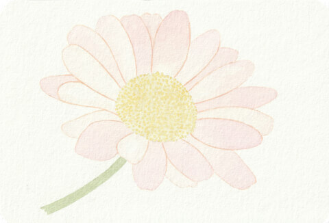 Marguerite (B) (coll. mini-fleurs ; plusieurs coloris différents) : carte postale 10,5 x 14,8 cm, aquarelle végétale avec des pigments extraits d’armoise commune, betterave, bouleau, carotte, chou rouge, garance, micocoulier et verge d’or.