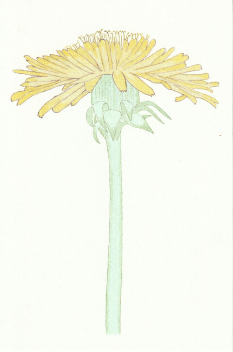 Pissenlit (coll. mini-fleurs) : 10 x 15 cm, aquarelle végétale avec des pigments extraits d’armoise commune, carotte, micocoulier, oignon blanc et verge d’or.