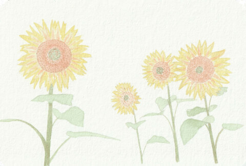 Tournesols (coll. mini-fleurs - CP) : carte postale 10,5 x 14,8 cm, aquarelle végétale avec des pigments extraits d’avocat, café, carotte, garance, micocoulier et verge d’or.