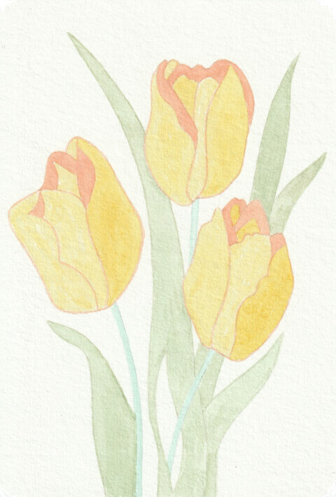 Tulipes (B) (coll. mini-fleurs ; plusieurs coloris différents) : carte postale 10,5 x 14,8 cm, aquarelle végétale avec des pigments extraits d’armoise commune, betterave, carotte, chou rouge, garance, micocoulier et verge d’or.
